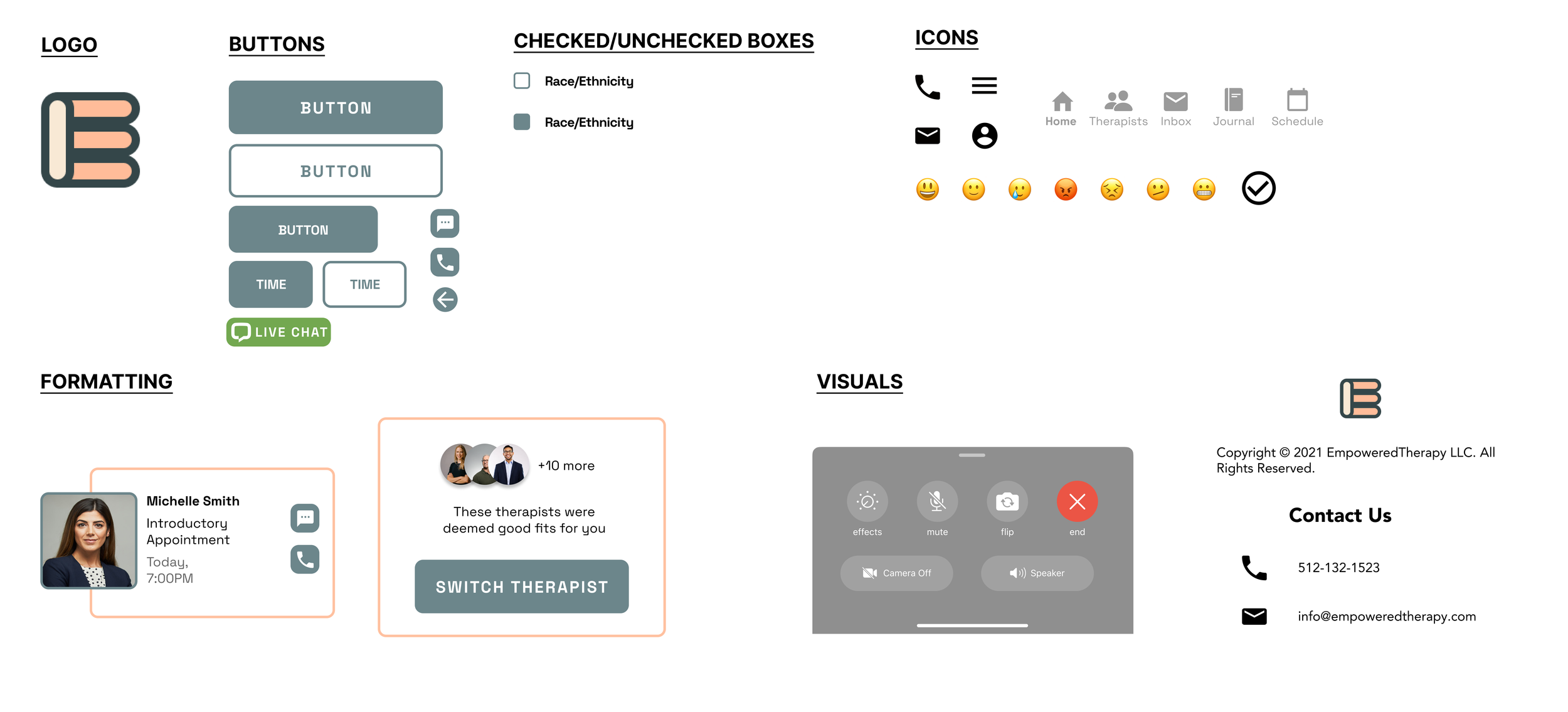 I derived the name Empowered Therapy, going off of the unique selling point that users are claiming control back and should be able to choose who they would want to bare their soul to in therapy.