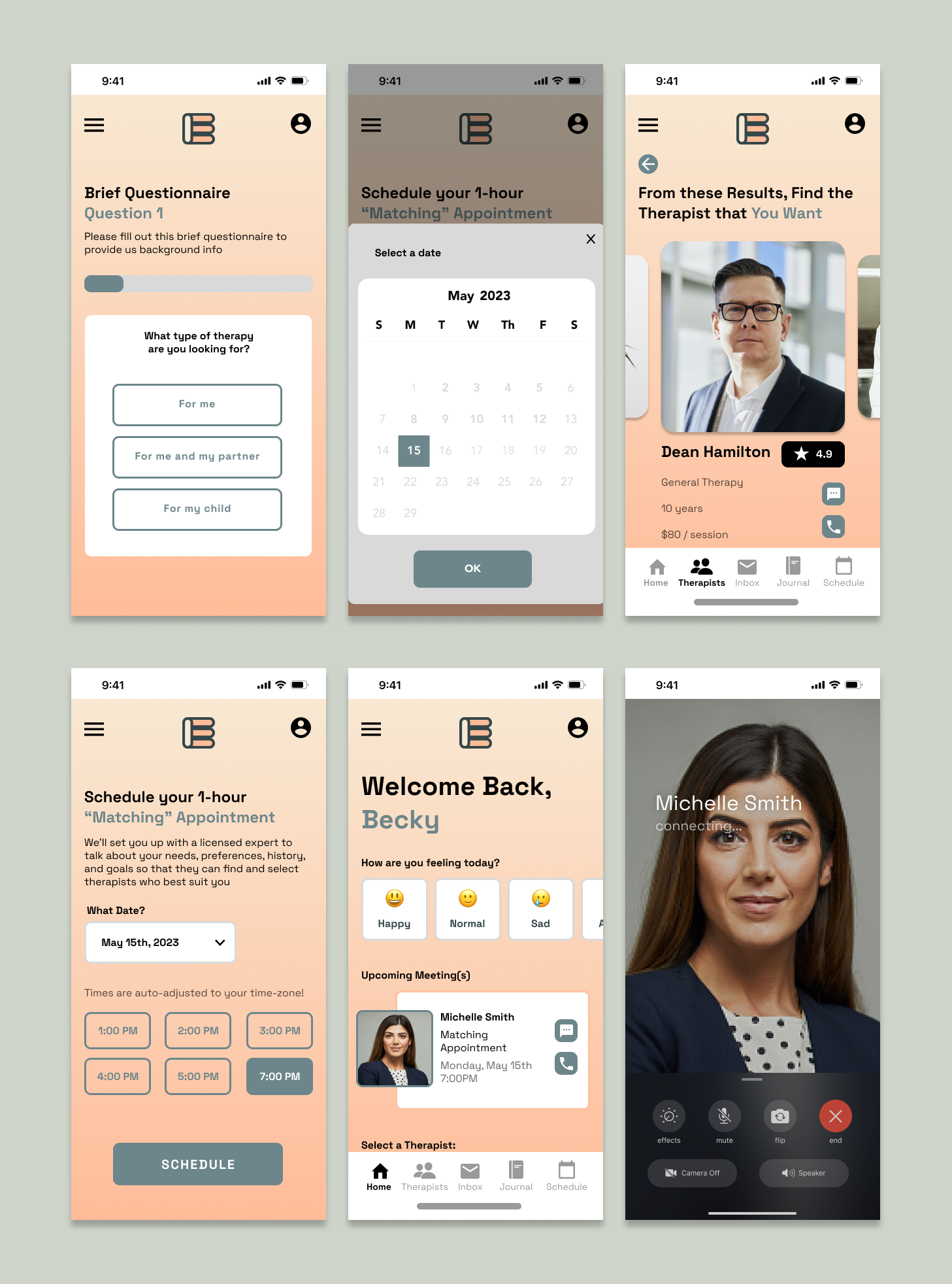 I wanted to design this app so that users can access online but intimate therapy sessions that may be harder to attend and schedule physically or financially. Patients care about their well-being and prefer convenient medical consultations via mobile apps